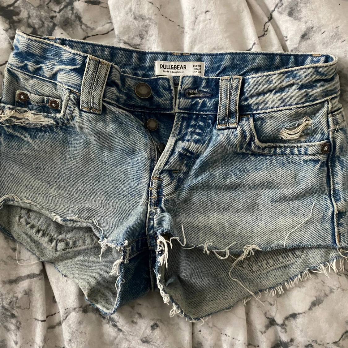 Jag säljer mina blå lågmidjade shorts från Pull&Bear. Shortsen är köpta gör 300 säljer för 200. Skriv för frågor eller bilder.❤️