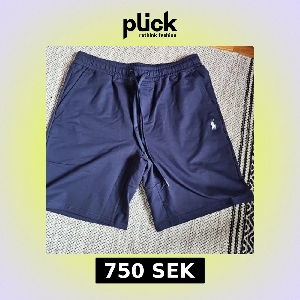 Snygga marinblå shorts från Polo Ralph Lauren med klassisk broderad logga på benet. Mjukt bomullsmaterial, elastisk midja med snörning och två sidofickor. Perfekta för chill dagar eller när du vill ha en clean och stilren look. Stl M men passar även S