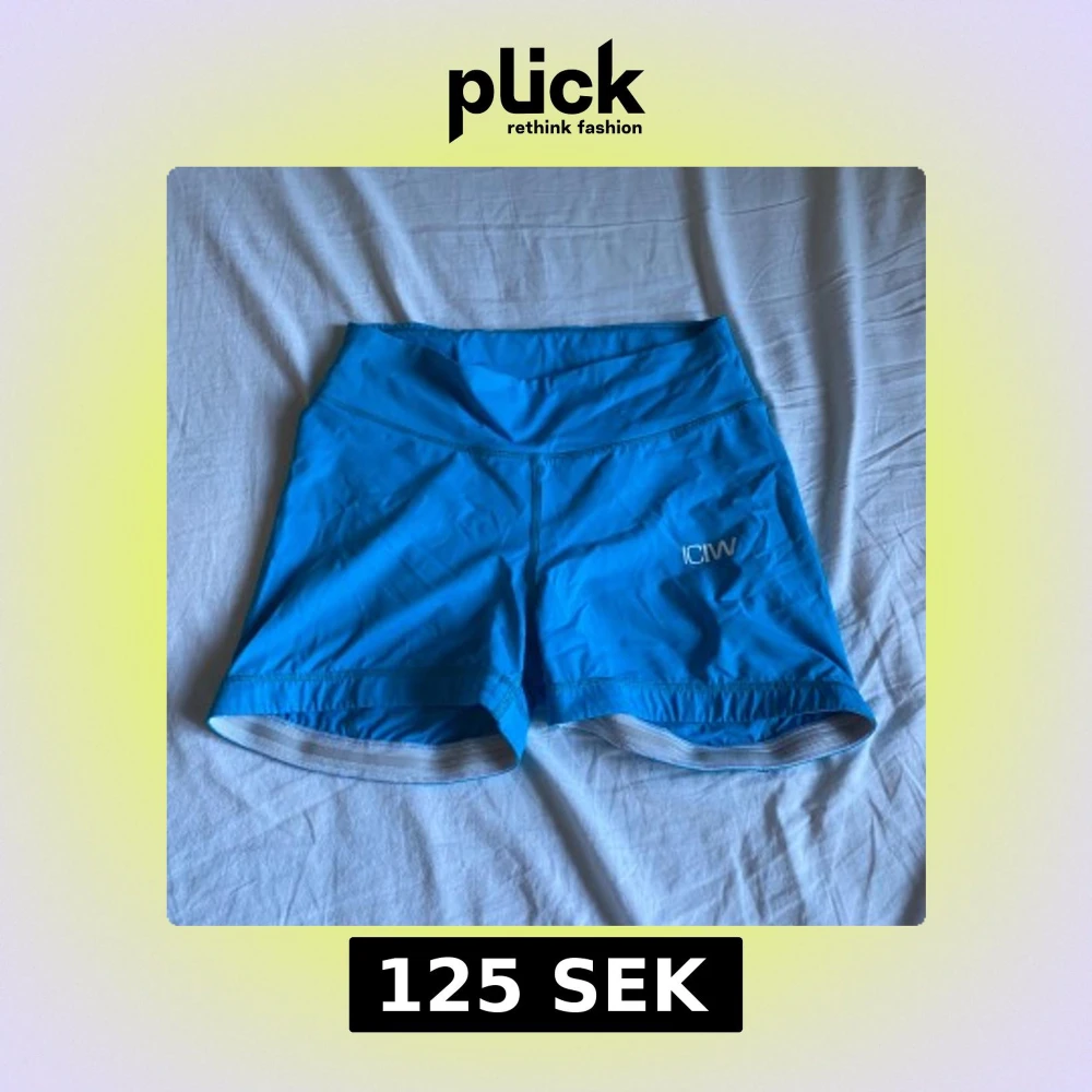 Säljer ett par blå träningsshorts från ICANIWILL. De har en liten scrunch och är tillverkade i ett stretchigt syntetmaterial. Perfekta för gymmet eller löprundan. Snygg och enkel design med ICANIWILL-logga på sidan.