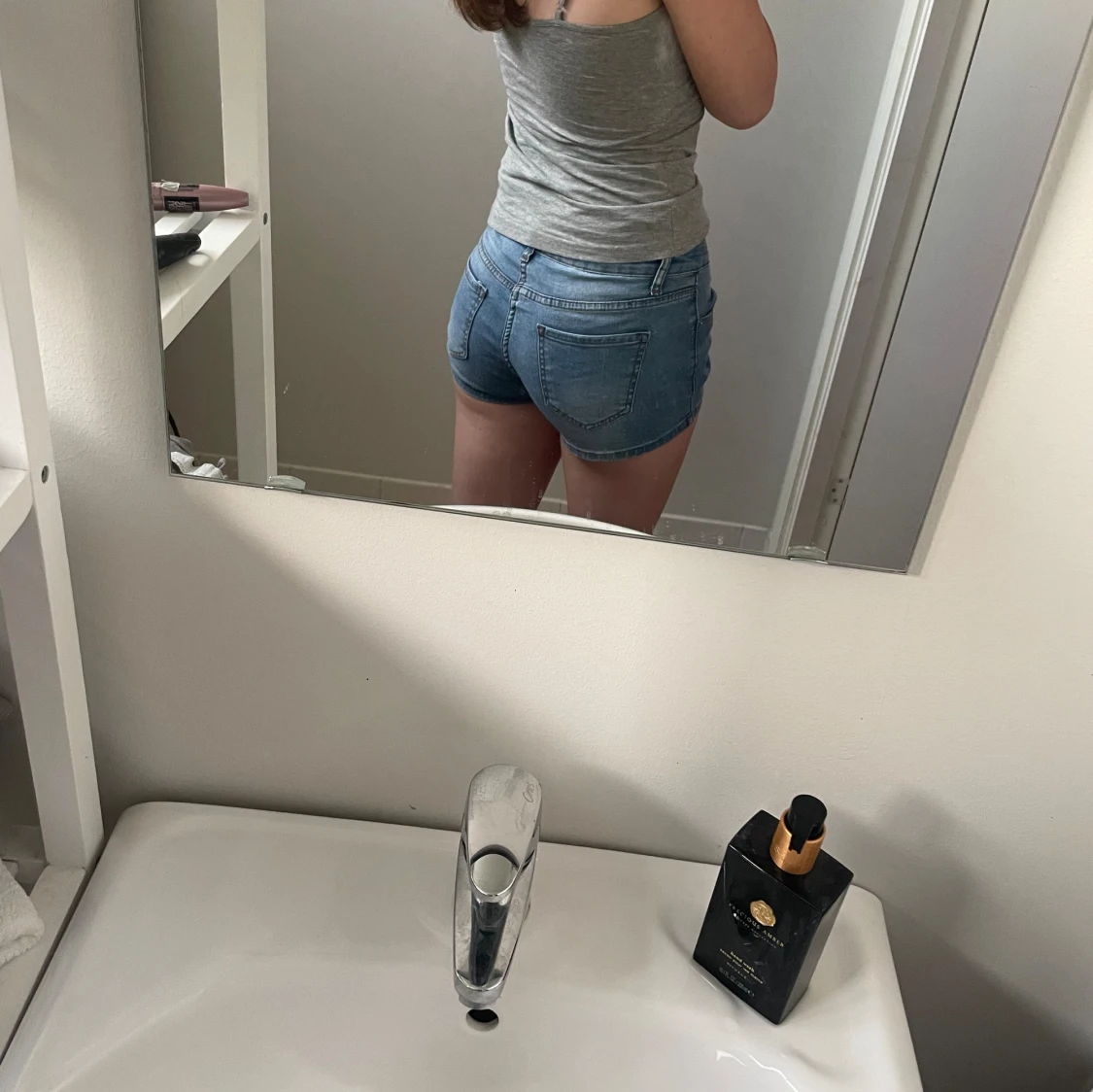 Blåa jeans shorts i storlek M 🎀 vet inte märket eftersom dom har ingen lapp, är som i storlek S. Används tyvärr inte längre 💞