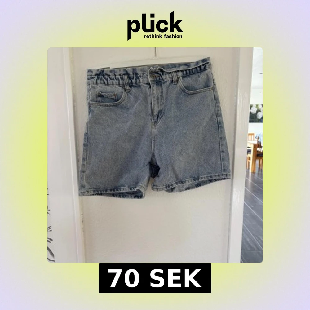 Snygga blå shorts från Grunt i klassisk jeansmodell. De har hög midja med resår, fem fickor och bälteshällor. Använda fåtal gånger och inga defekter. Midjemåttet: 35cm men om man stretchar ut de till max är midjemåttet: 42-43cm rakt över. Läs gärna bio💕