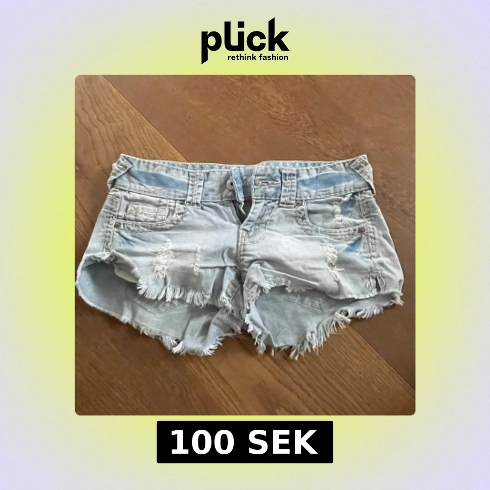 Säljer ett par lågmidjade ljusblå jeansshorts från Fishbone i storlek XS. Shortsen har slitna detaljer, fransig kant och klassisk femficksmodell. Skriv för fler bilder, pris kan diskuteras! Midjemåttet tvärs över midjan är ungefär 37cm💓