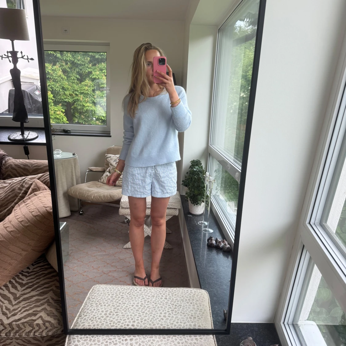 Supersöta blåvitrutiga shorts med normal passform och låg midja. De har klassiskt rutmönster, knapp och dragkedja framtill samt är sydda i mjuk bomull. Perfekta för varma dagar och ger en fräsch sommarkänsla.