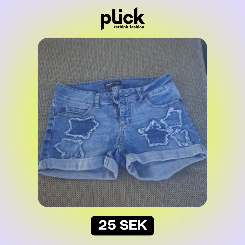 Blå jeansshorts från ONLY med slitna detaljer och uppvikta ben. Shortsen har fem fickor och en knapp- och dragkedjestängning framtill.