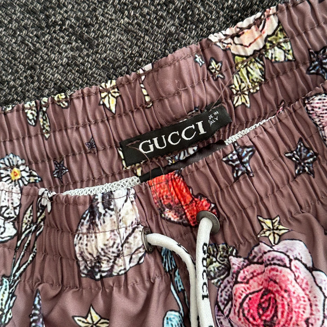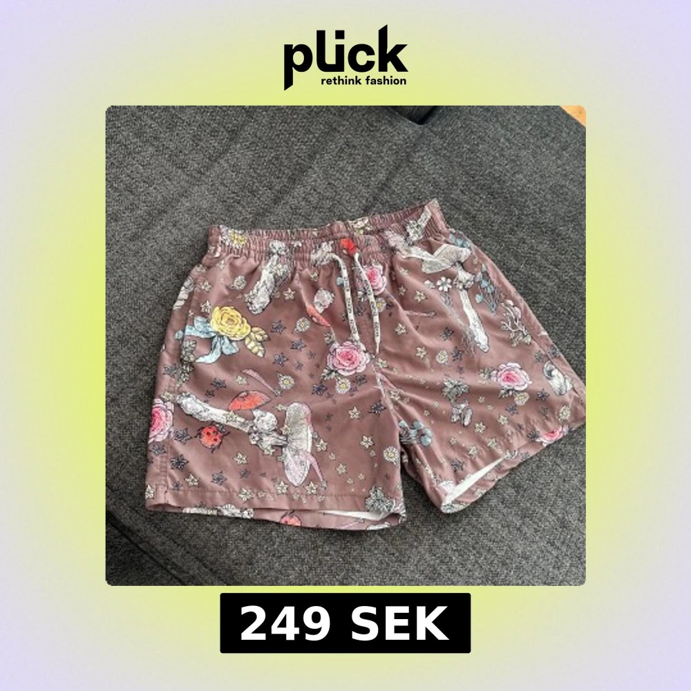 Säljer ett par bruna shorts med färgglatt blommönster och stjärnor. Shortsen har snörning i midjan och är perfekta för sommaren. Mjukt och lätt material som känns skönt mot huden.