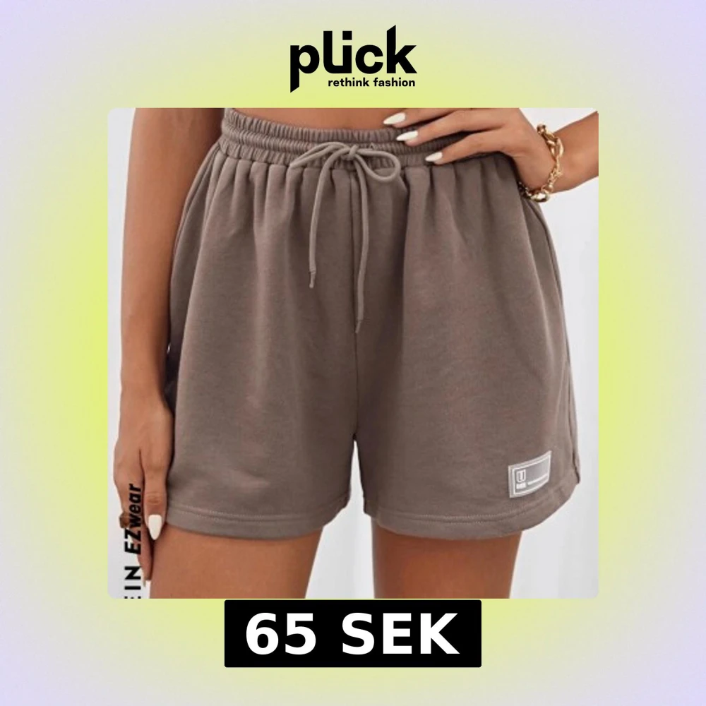 Säljer ett par bekväma bruna shorts. De har en elastisk midja med snörning för justerbar passform och en liten logga på benet. Använda en gång