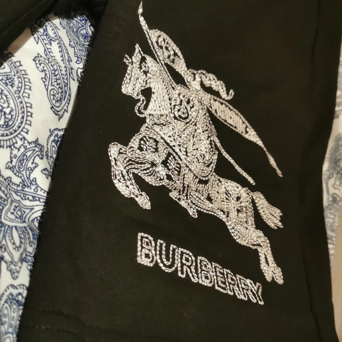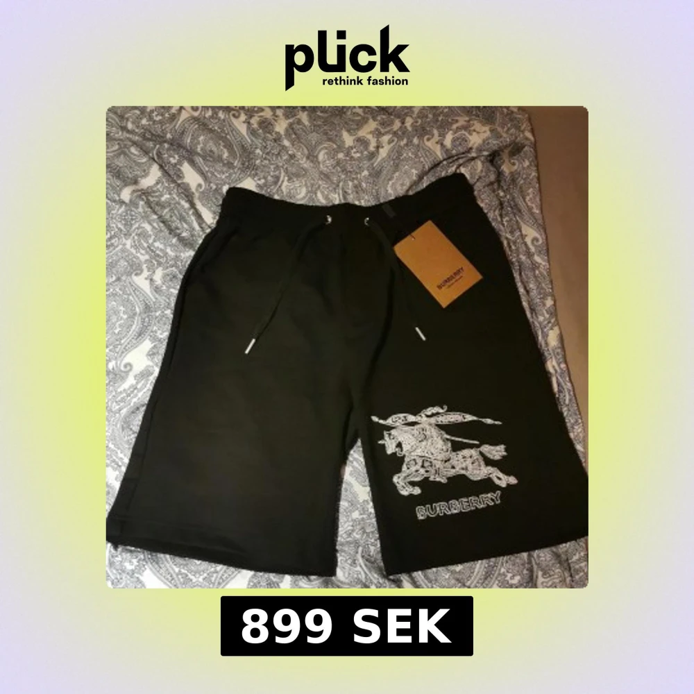 Svarta shorts från Burberry med snyggt broderat riddarmotiv och logga i vitt på ena benet. Modellen har snörning i midjan och är tillverkad i mjuk bomull, perfekt för en chill och stilren look. Pris kan diskuteras