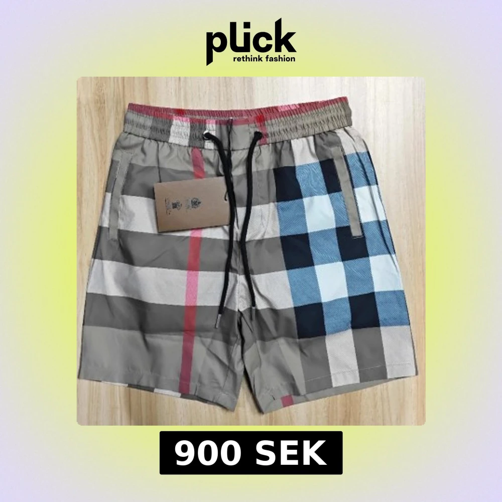Snygga shorts från Burberry i klassiskt rutigt mönster med beige, blå, röd och vit färg. Shortsen har elastisk midja med svart snörning och sidofickor. Perfekta för sommaren och strandhäng.