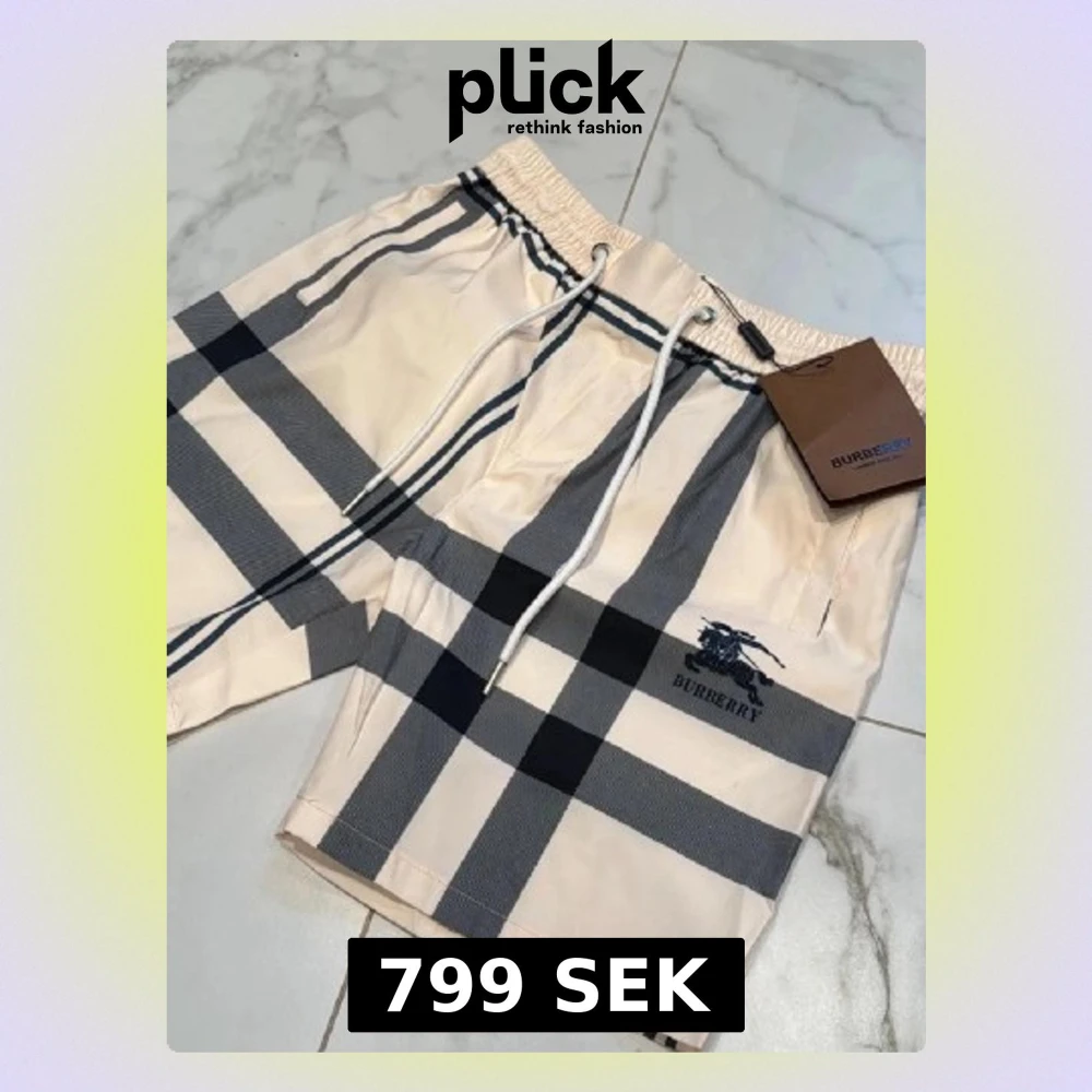 Snygga beige shorts från Burberry med klassiskt rutigt mönster i svart och grått. Shortsen har resårmidja med vit snörning och sidofickor. Tillverkade i ett lätt material som passar perfekt till sommaren. Burberry-logga broderad framtill.