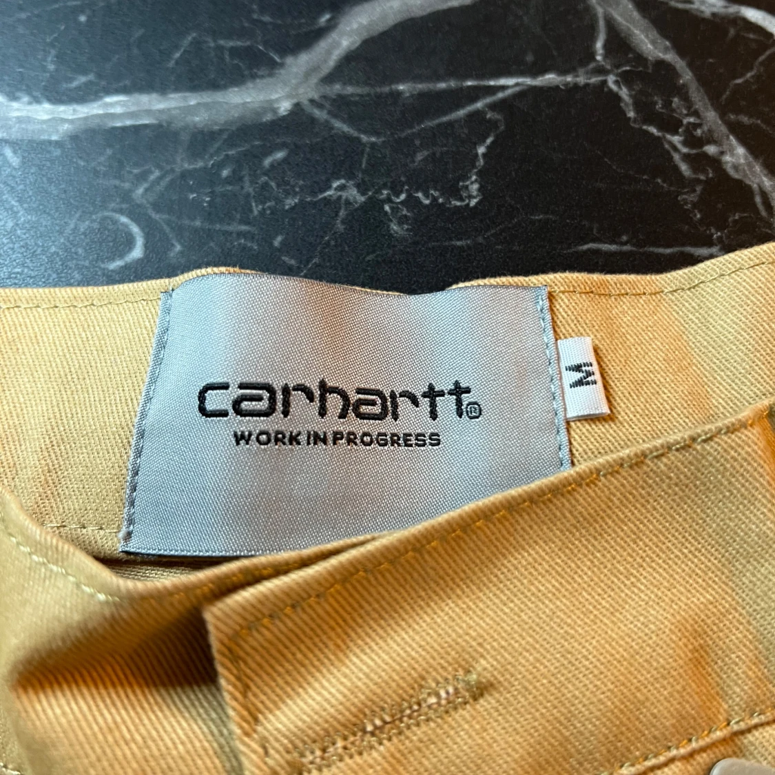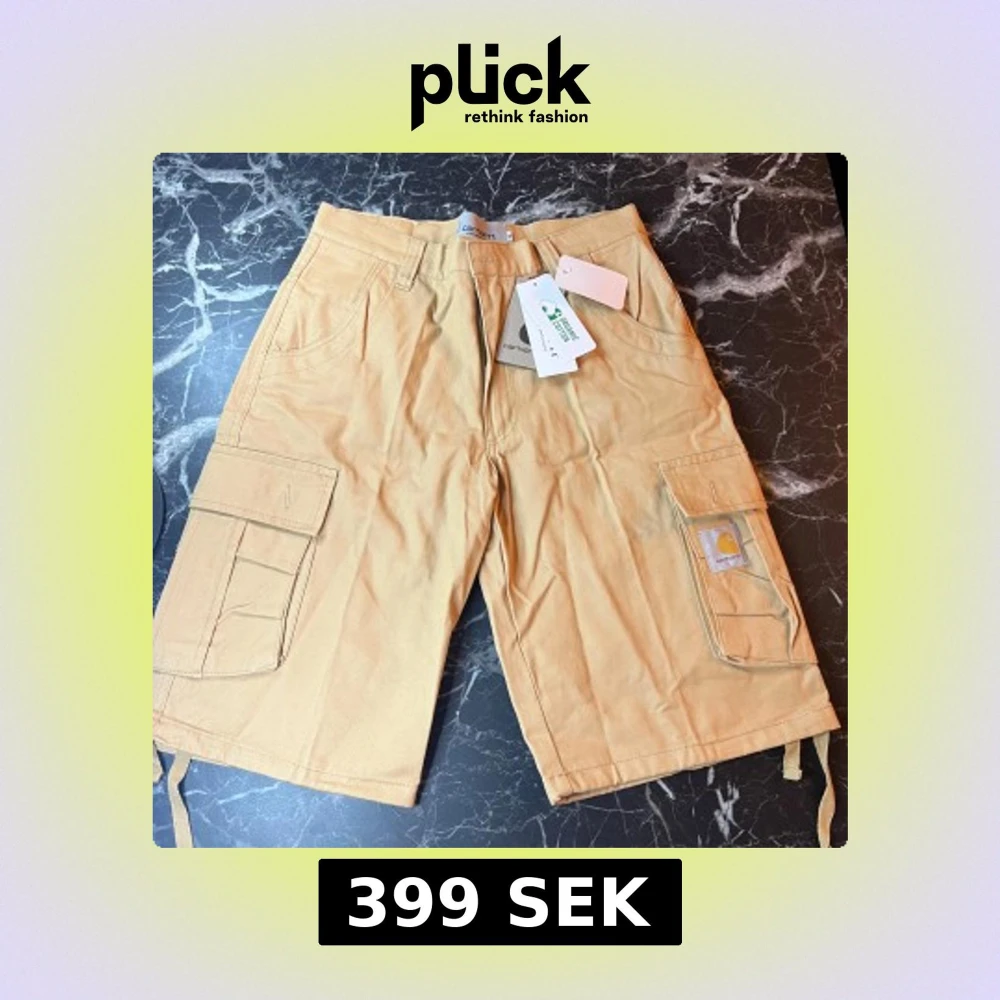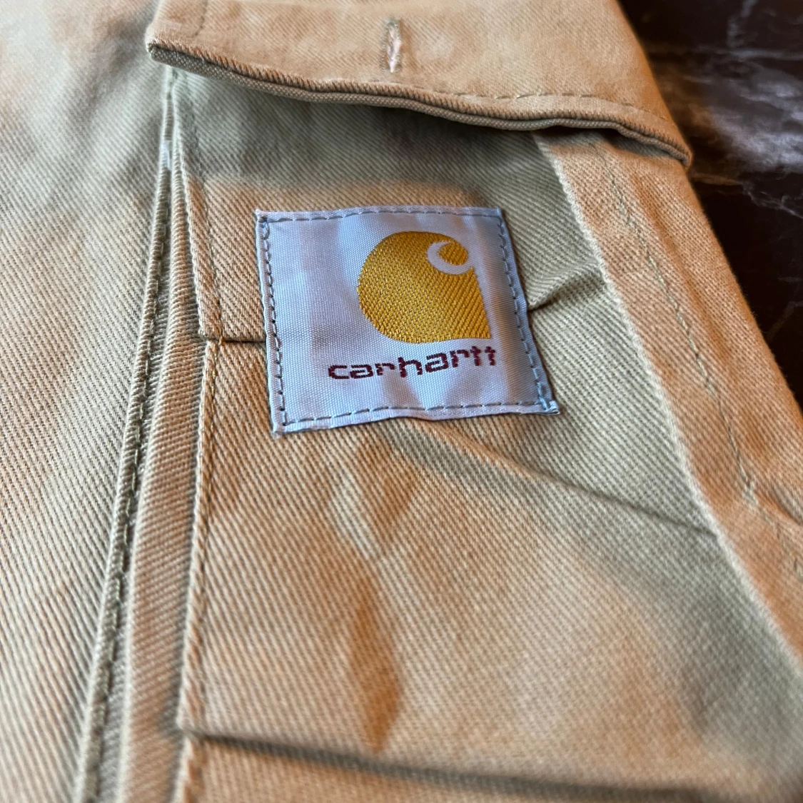 Snygga beige cargoshorts från Carhartt med flera praktiska fickor på sidorna. Klassisk loose fit och robust bomullsmaterial, perfekta för sommardagar. Stora fickor med lock och Carhartt-logga på benet ger en cool och funktionell look.