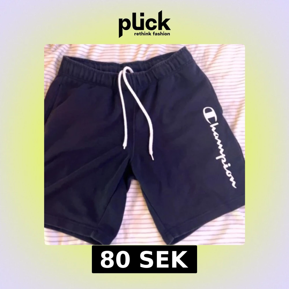 Snygga svarta mjukis shorts från Champion i storlek small. De har vit snörning i midjan och ett stort vitt Champion-tryck längs benet. Modellen är loose fit och passar perfekt för chill eller träning. Materialet är mjuk bomull för skön känsla hela dagen. Dom har aldri kommit till användning. (Pris kan diskuteras)