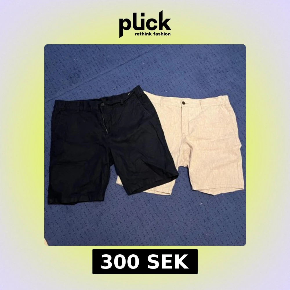 Två par stilrena shorts från Cos i storlek L, ett par mörkblå och ett par beige. Båda är tillverkade i en skön blandning av linne och bomull, har normal passform, sidofickor och bakfickor med knapp. Perfekta för varma sommardagar.