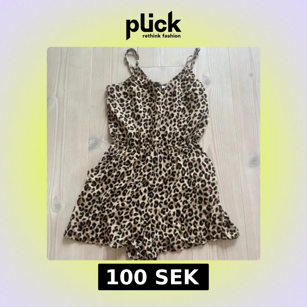 Säljer en leopardmönstrad jumpsuit/byxdress från H&M Divided i storlek 36. Den har smala axelband, resår i midjan och är tillverkad i ett lätt och luftigt material. Perfekt för dig som vill ha en skön sommar dress med leopardmönster!