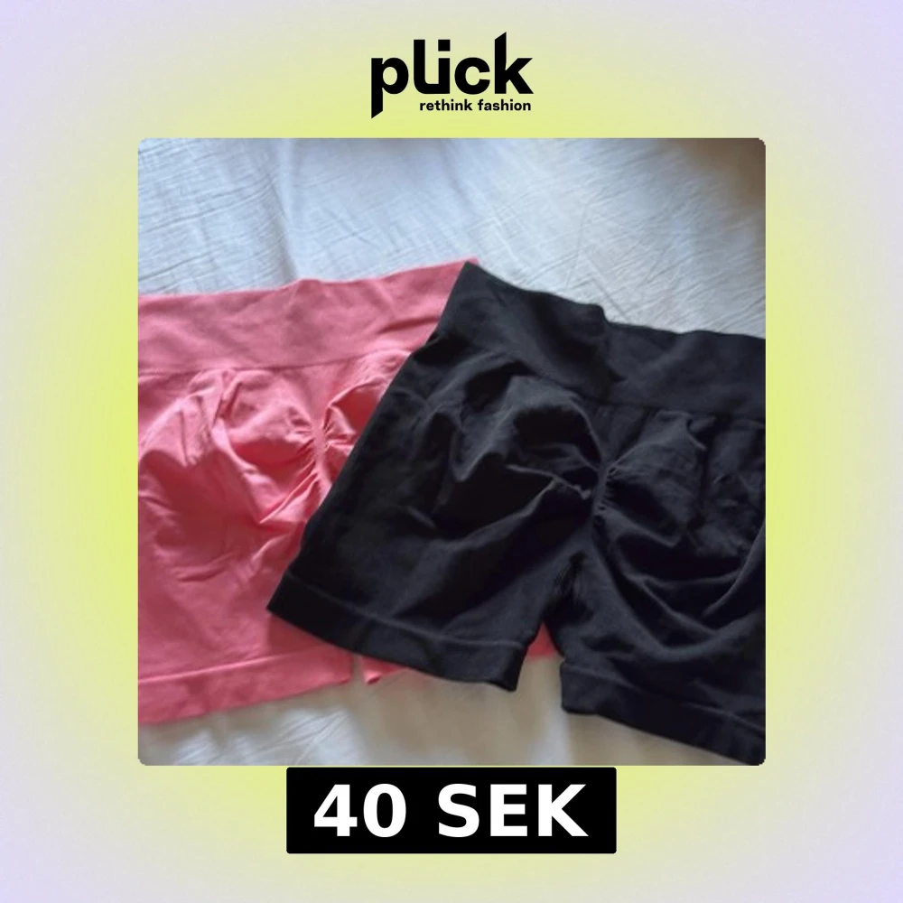 Två par shorts i svart och rosa, råka köpa dubbelt så aldrig använda! Man köper båda för 40kr! Obs man kan inte köpa ett par utan bara båda🩷