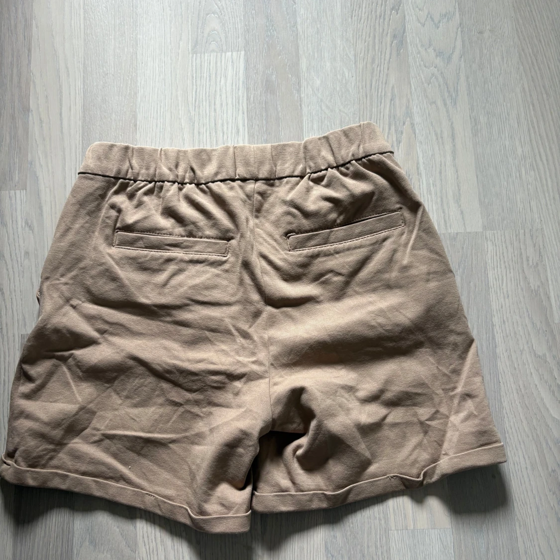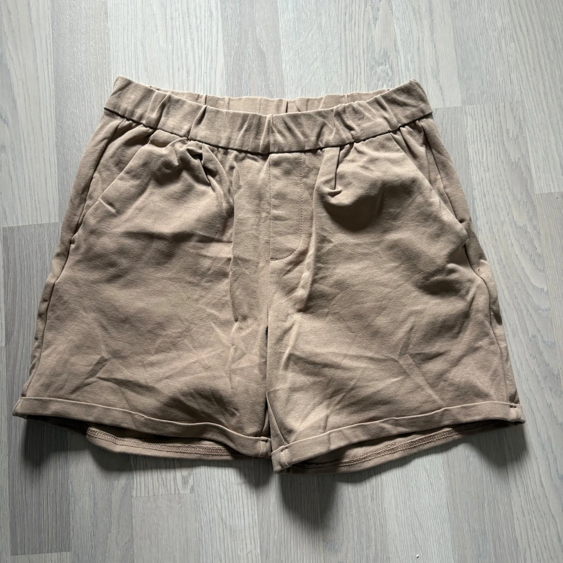 Snygga beiga mjukisshorts med elastisk midja och fickor både fram och bak. Perfekta för varma dagar och har en avslappnad passform. Tillverkade i mjukt material som känns skönt mot huden.