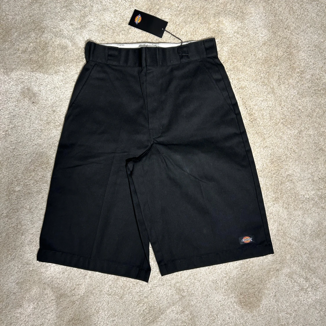 Snygga svarta shorts från Dickies i loose fit. Perfekta för en avslappnad stil med praktiska fickor och dragkedja. Märkeslogga synlig på sidan. Passar bra till både vardag och fritid.