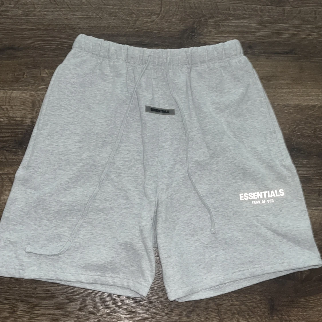 Gråa shorts i storlek L från Essentials Fear of God som är helt nya. Har tyvärr inte kvittot. Pris från 1400. Pris kan diskuteras.