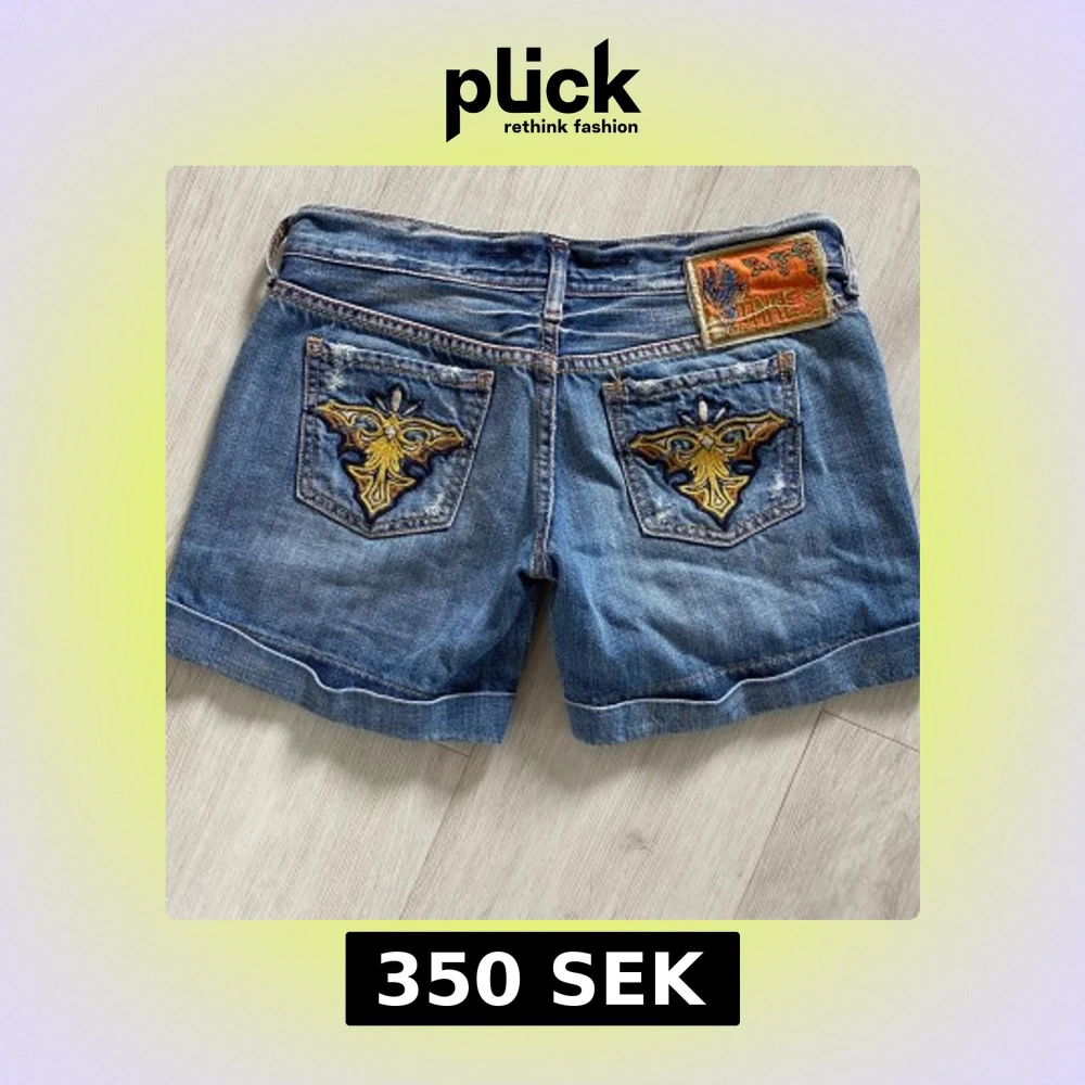 asfina vintage lågmidjade jeansshorts från Take Two som jag köpte second hand i Amsterdam. W27. Midjemått ca 36, dragkedjan är ca 7 cm. Säljer då de tyvärr inte passar mig. De har broderi på de bakre fikorna och har dekorativa nitar framtill. Märkespatch i bak som tyvärr är lite sliten och har några lösa trådar. Fickorna i bak är tyvärr också lite slitna, men det påverkar inte funktionen. Går att vika en extra gång ifall man inte gillar längden. Stretchar knappt. Går att komma med prisförslag.