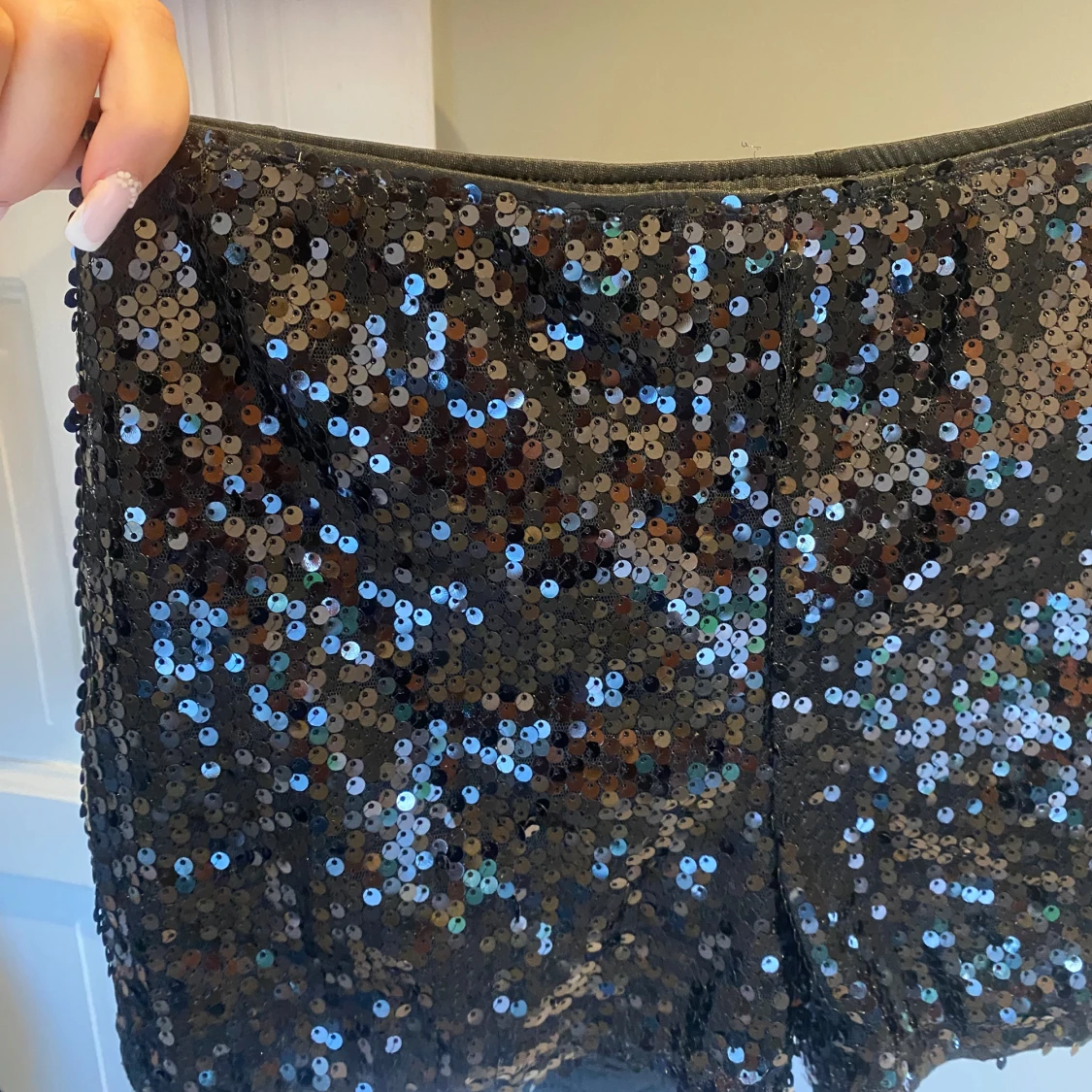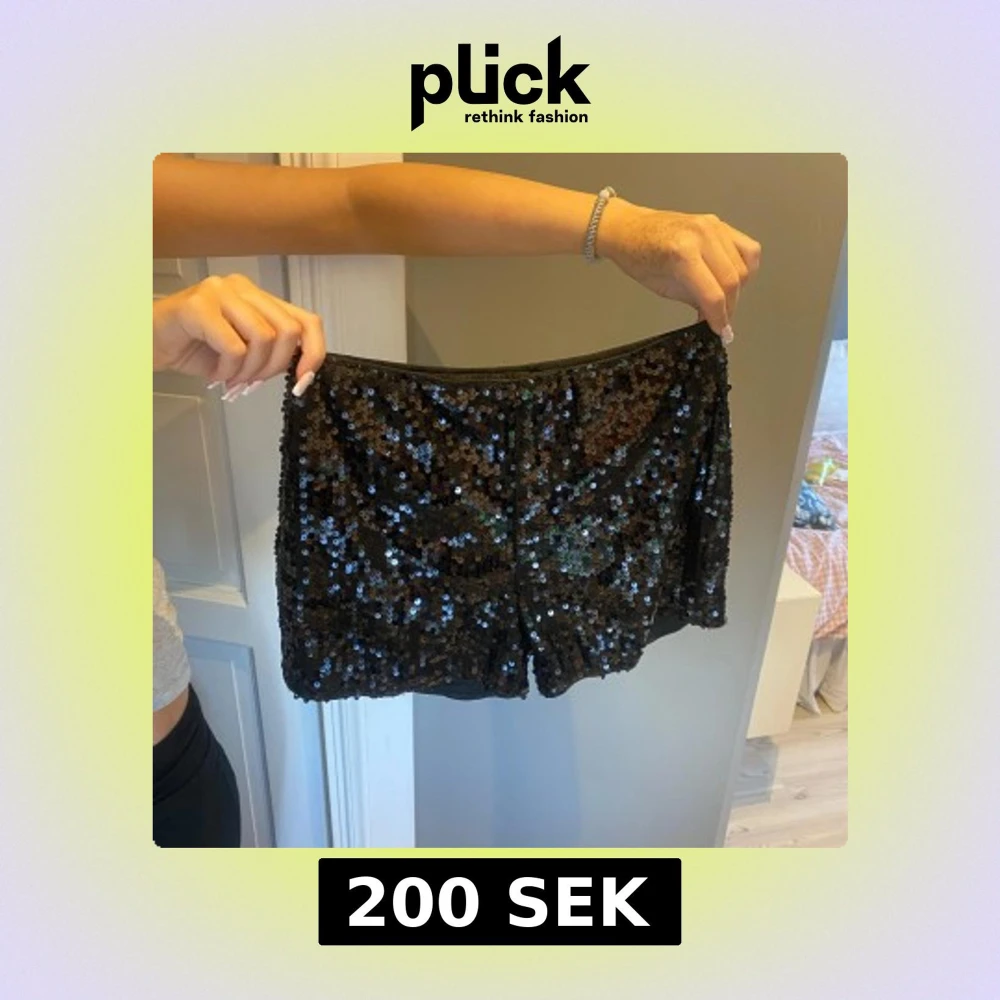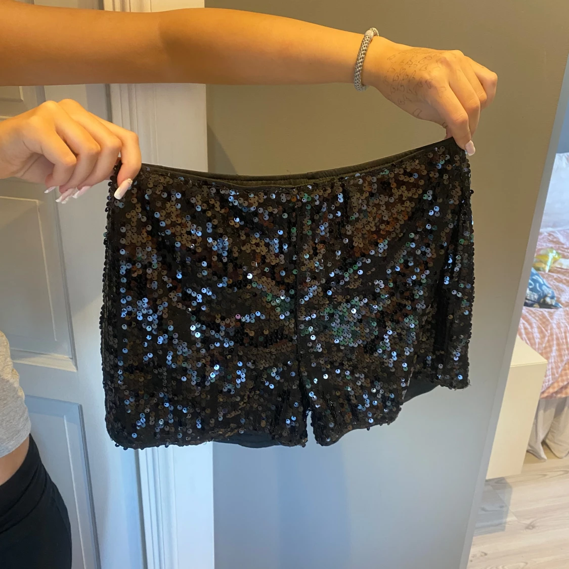Glittriga svarta shorts täckta med paljetter som ger en riktigt festlig vibe. Modellen är loose fit och har en rak, enkel form med elastisk midja. Perfekta för att sticka ut och glänsa på nästa event. Materialet är syntet och känns lätt mot huden.