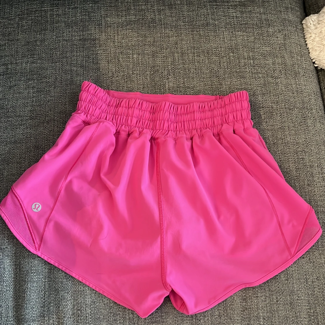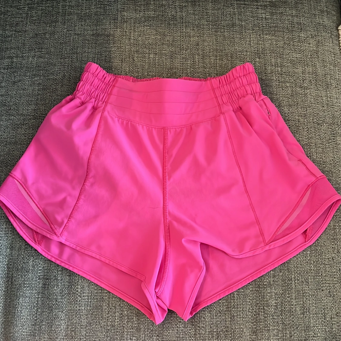 INTRESSEKOLL! Inte helt säker att jag vill sälja.💞Snygga knallrosa träningsshorts från Lululemon med bred resår i midjan och mesh-detaljer på sidorna. Shortsen har en liten dragkedjeficka och är tillverkade i ett lätt och snabbtorkande syntetmaterial. Perfekta för gymmet eller löprundan! I storlek 2 passar mig som har xs/S. köpta för 680kr