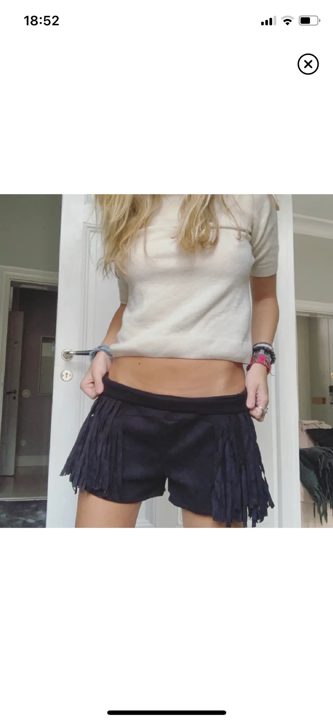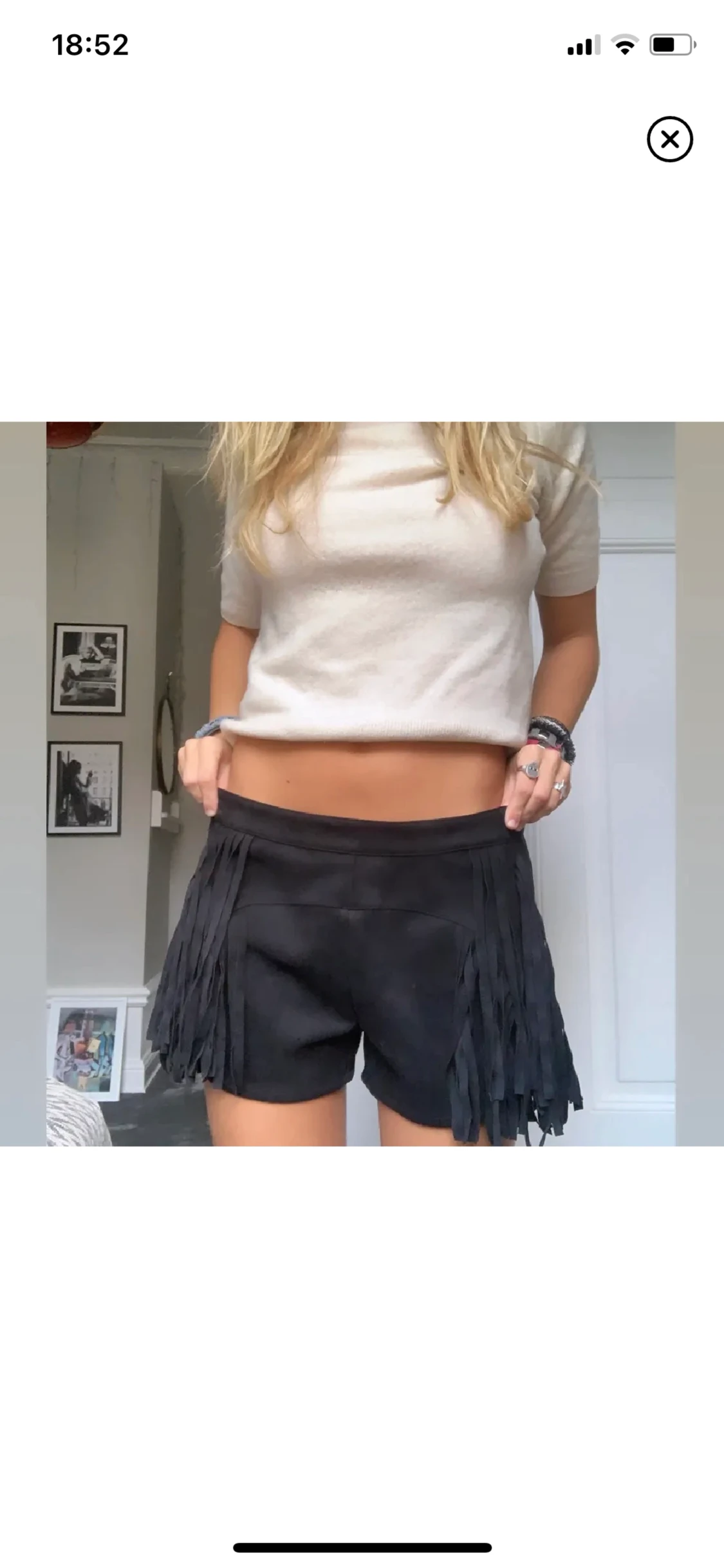 Perfekta cowboy shortsen eller bara till sommaren!!! As balla mockaimitations shorts med fransar!! Så snygga att vika ner också för lågmidjat. Skulle säga att de passar S-L då de är stretchiga och sitter sjukt snyggt oversized!!!