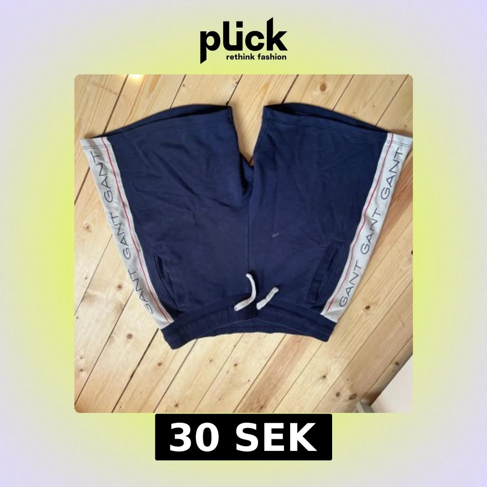 Snygga marinblå shorts från Gant med vita och röda detaljer längs sidorna där det står GANT. Shortsen har snörning i midjan och två fickor framtill. Perfekta för sommaren och chill dagar.