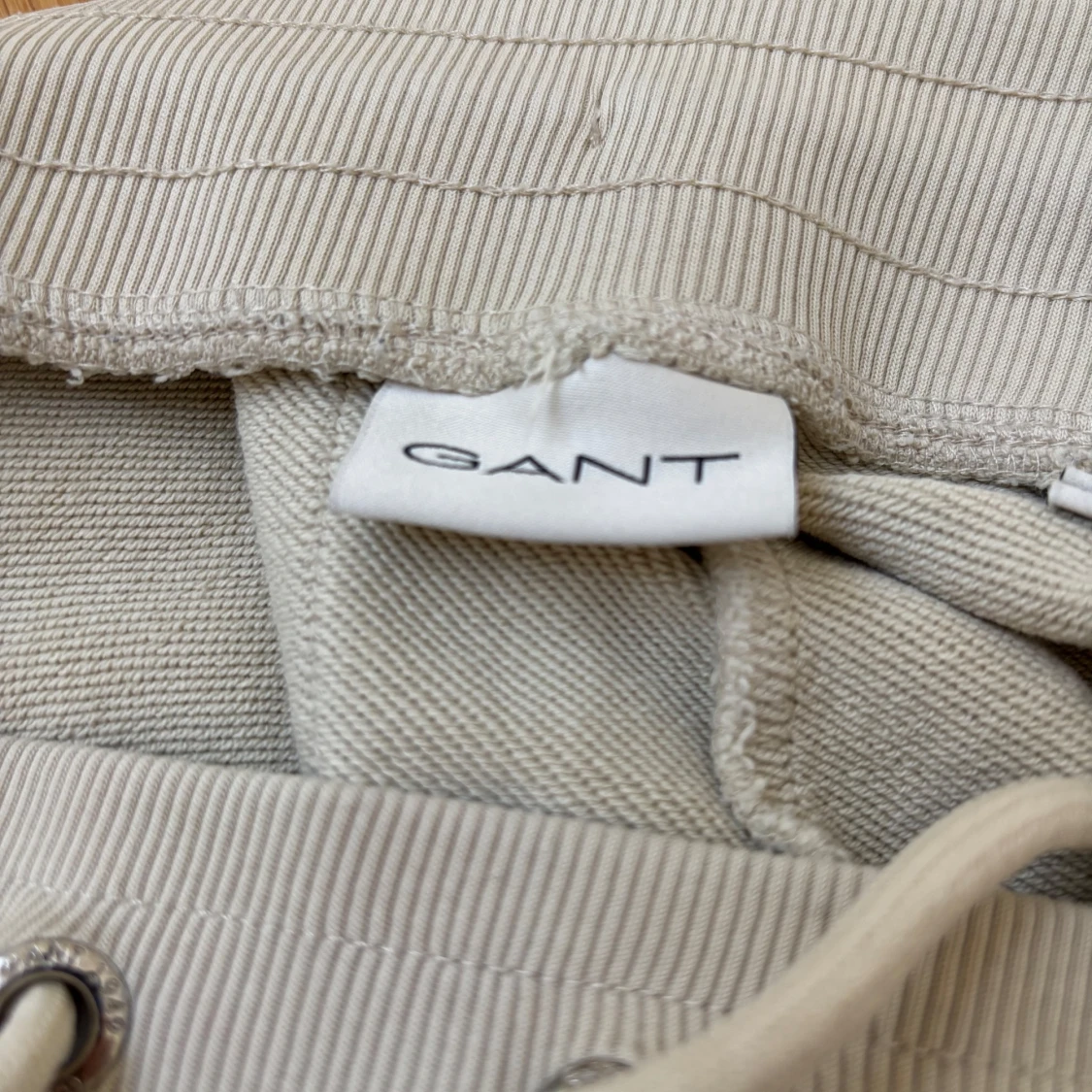 Snygga beiga shorts från GANT med ribbad midja och snörning. Shortsen har fickor på sidorna och en liten broderad GANT-logga framtill. Perfekta för varma dagar och enkel att matcha med olika toppar.