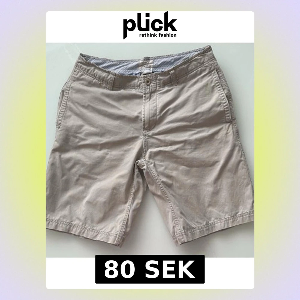 Klassiska beige shorts i bomull med normal passform. Shortsen har två sidofickor fram och två bakfickor med knapp, samt hällor för bälte. Perfekta för varma dagar och enkel att matcha med olika stilar. Storlek S / W31.
