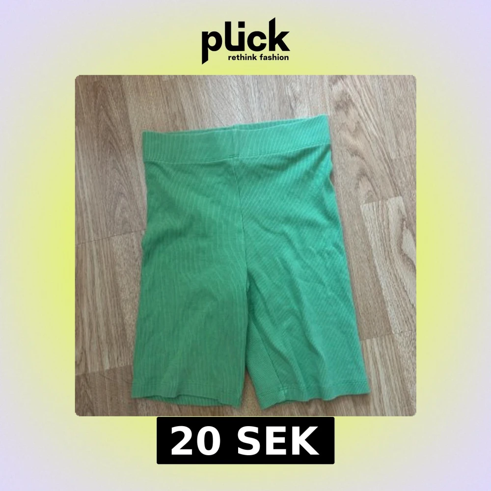 Snygga gröna cykelshorts från Gina Tricot i ribbat stretchigt material. De har en hög midja och sitter tight. Storlek S, normala i storlek. Använda fåtal gånger. Se sista bilden för mest rättvis färg!