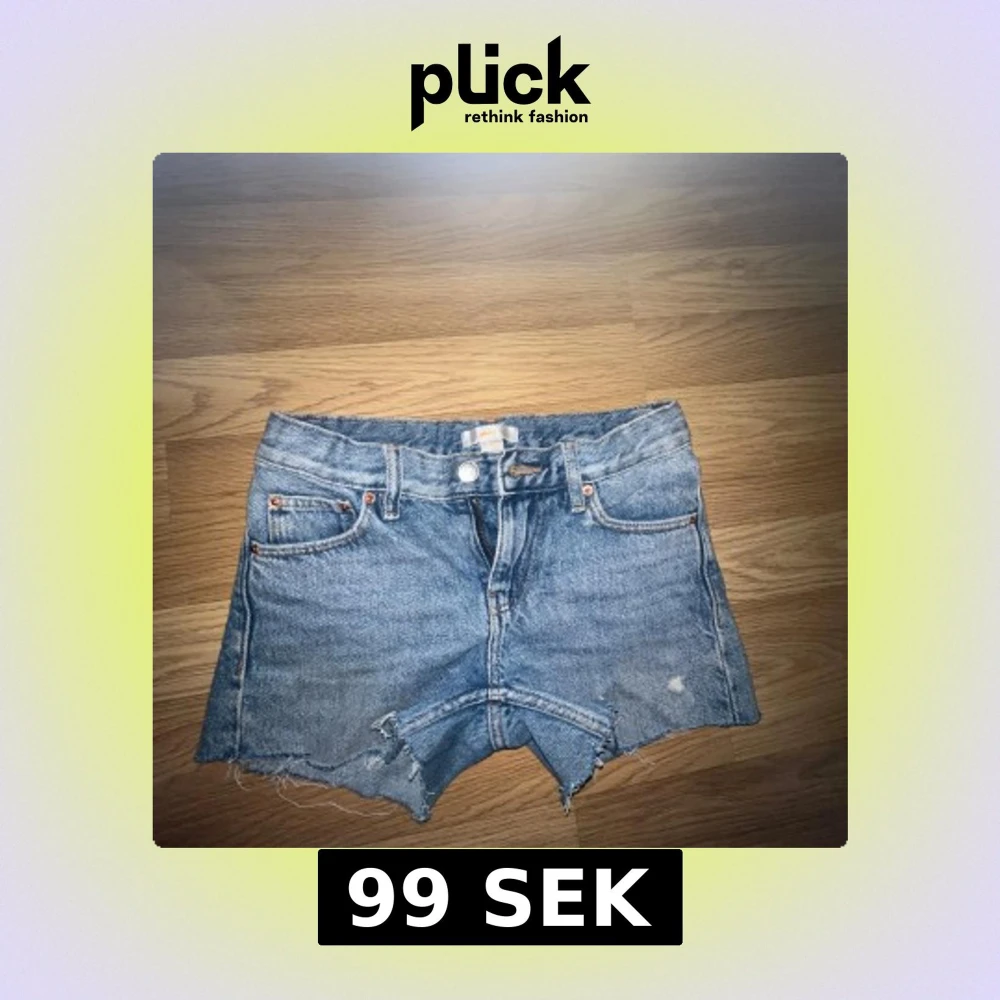 Snygga blå jeansshorts från Gina Tricot med råa kanter och klassisk femficksdesign. Shortsen har låg midja och slitna detaljer framtill för en cool, avslappnad look. Perfekta för varma dagar och enkel att matcha med allt.