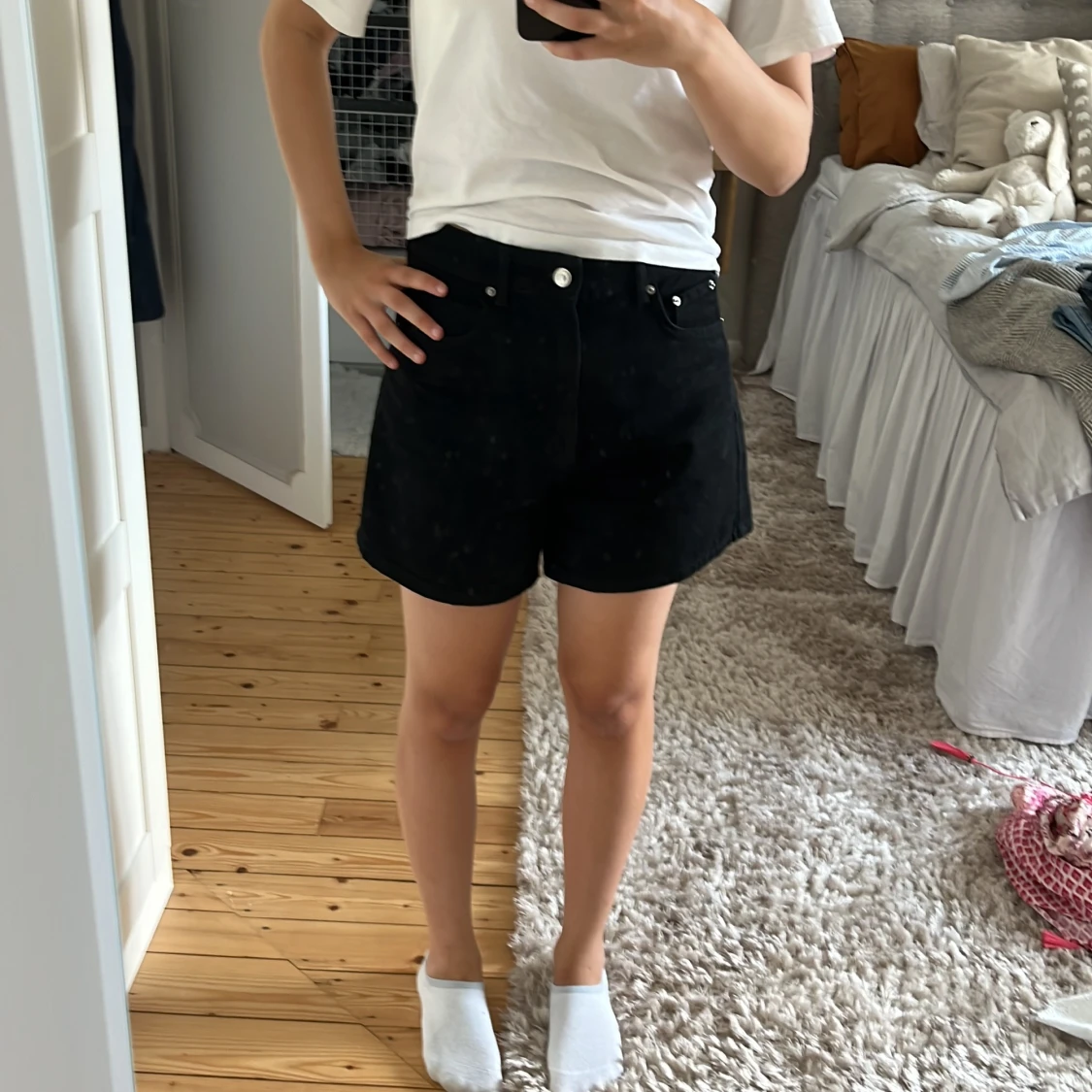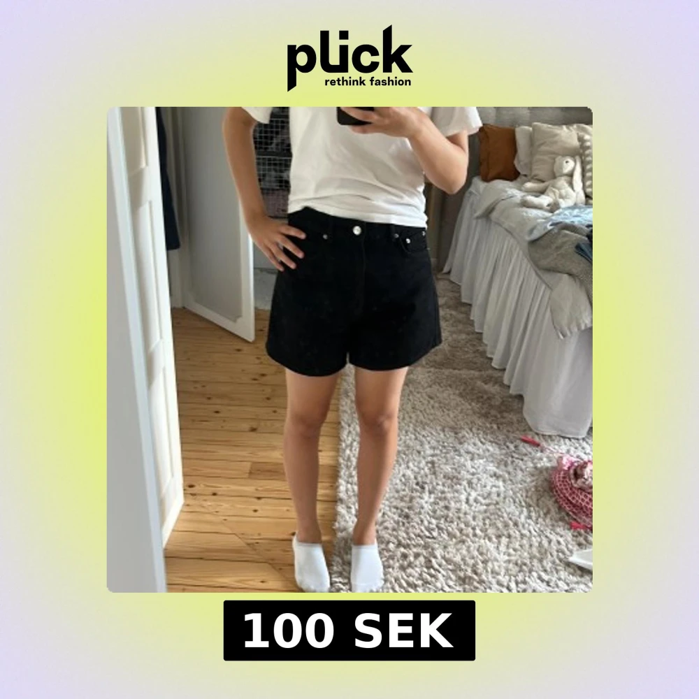 Snygga svarta jeansshorts med klassisk femficksdesign och knappstängning fram. Shortsen har en rak och normal passform, perfekt för dig som gillar enkel och stilren look. Passar grymt till t-shirt eller hoodie och är ett måste i garderoben.