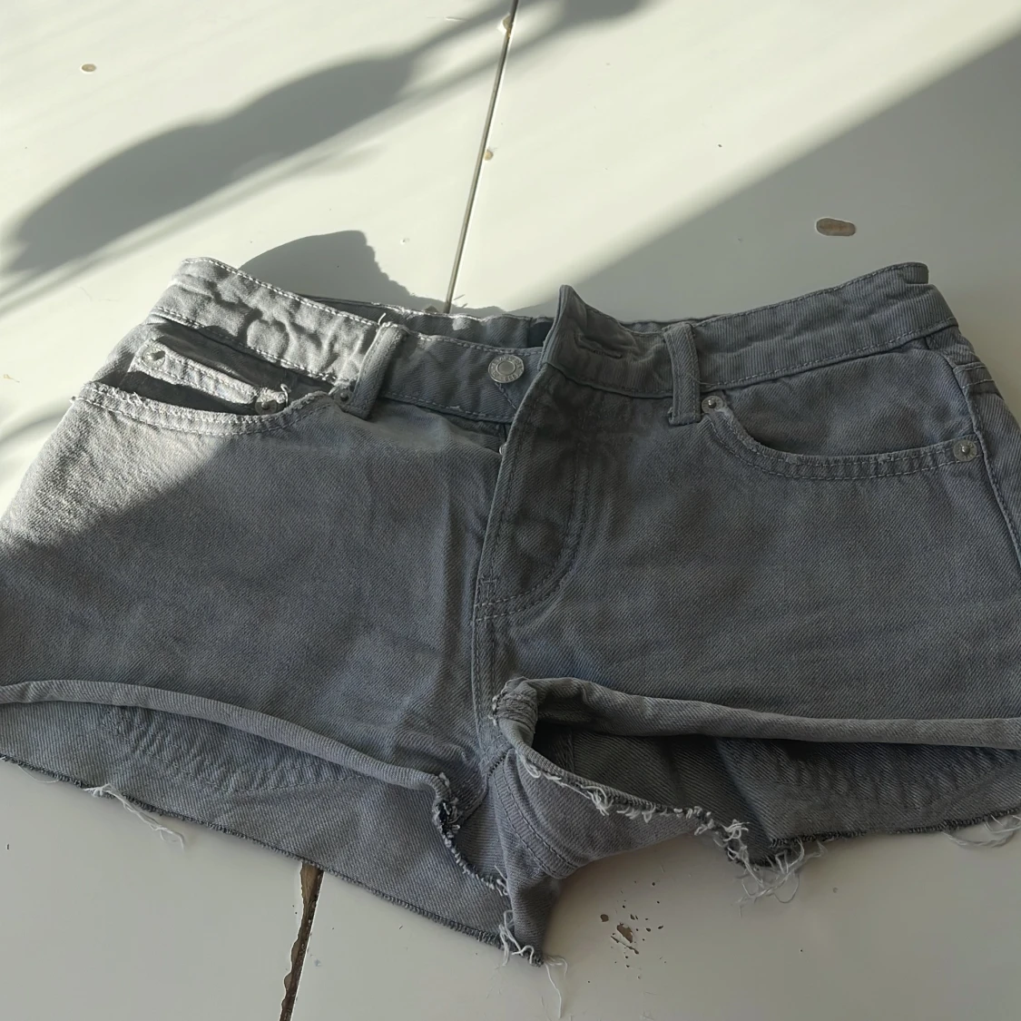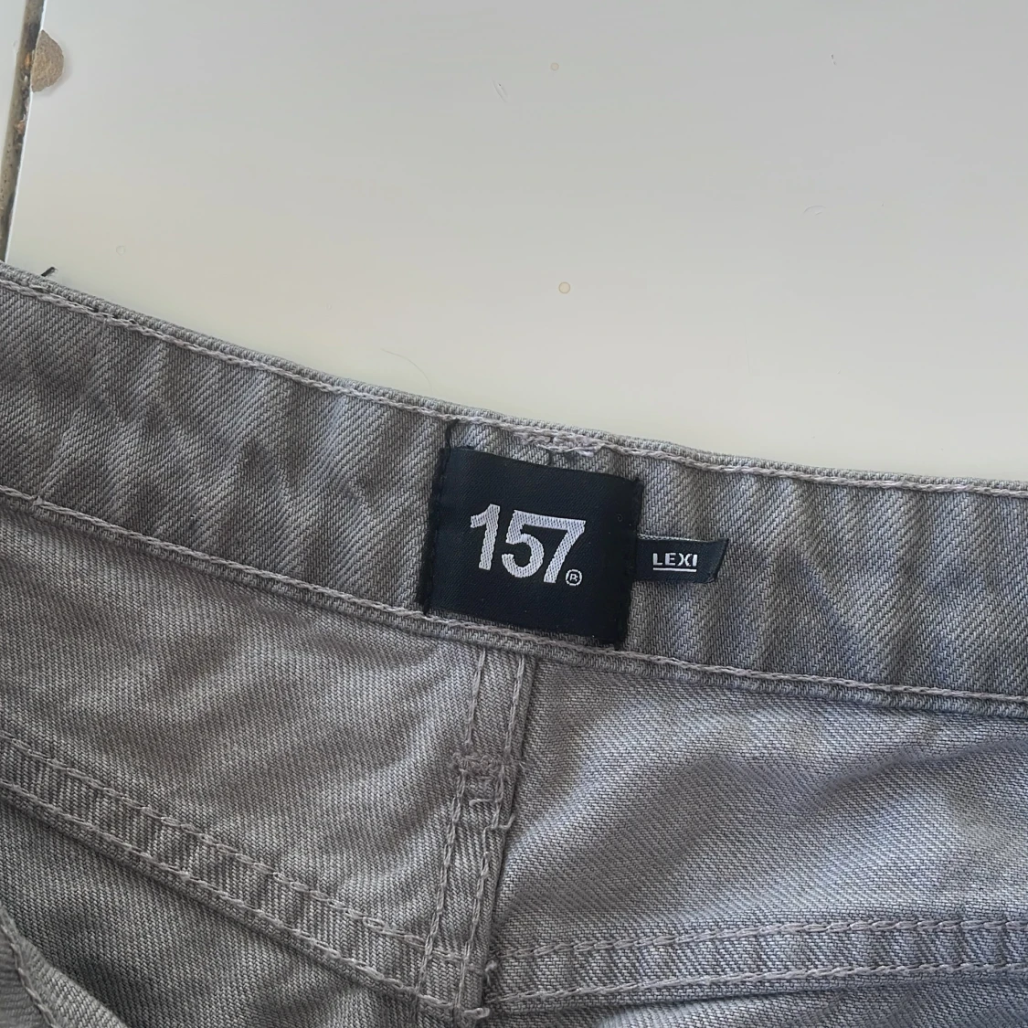 Snygga grå jeansshorts från 157, modell Lexi. De har råa, fransiga kanter och klassisk femficksdesign. Perfekta för en avslappnad stil med en cool edge. Passar dig som gillar en enkel men trendig look.