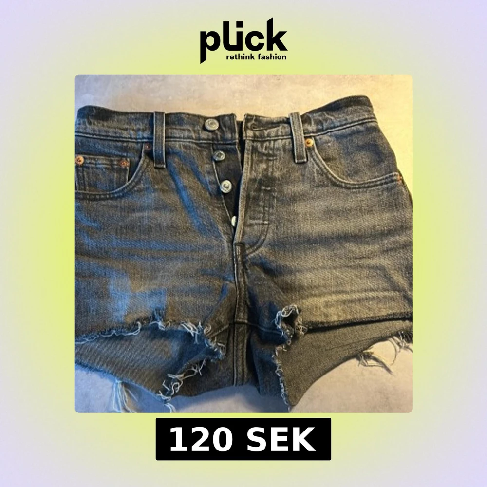 Säljer ett par grå jeansshorts från Levi's med hög midja och råa, fransiga benslut. Klassisk femficksmodell med knappar framtill och Levi's-logga bak. Perfekta för en avslappnad stil.