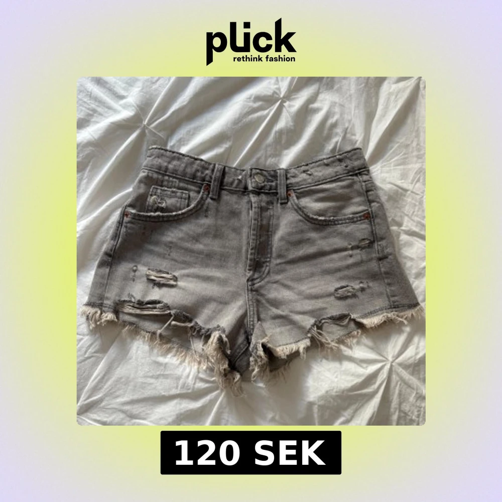 Grå jeansshorts med en sliten design från Zara i storlek 34. Endast använda ett fåtal gånger💕