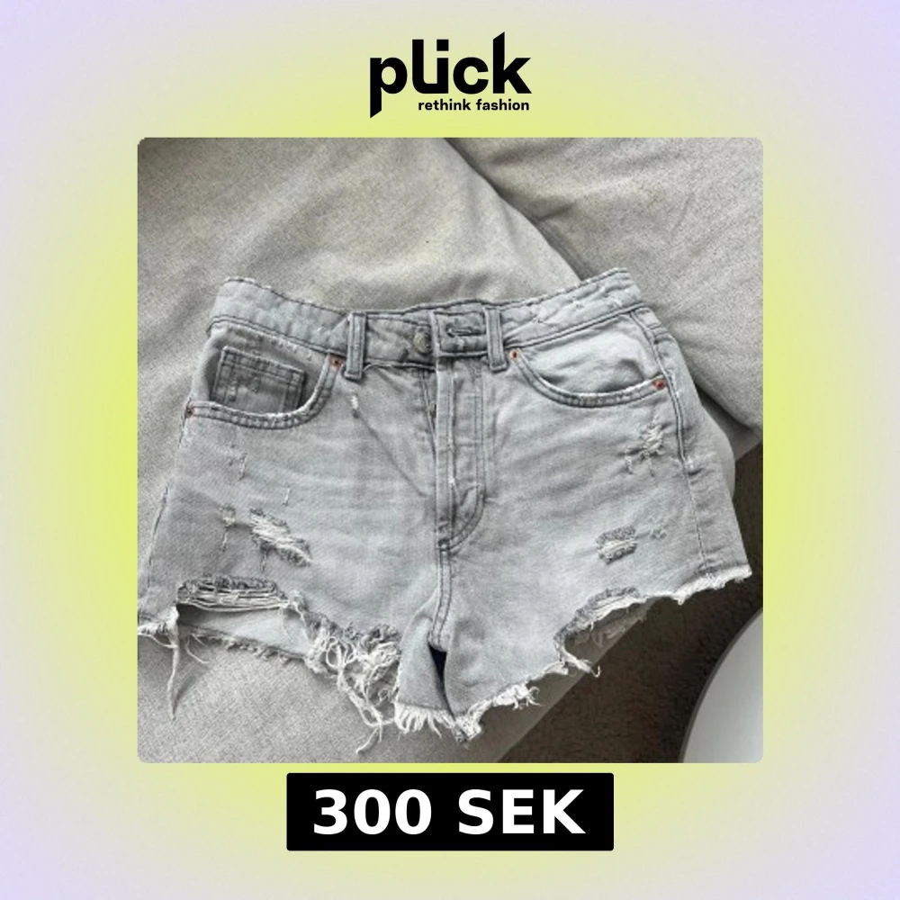 Säljer ett par grå jeansshorts från Zara med slitna detaljer och fransar. De har en klassisk femficksdesign och är perfekt för en avslappnad stil. Shortsen är lågmidjade och har en cool, vintage look.