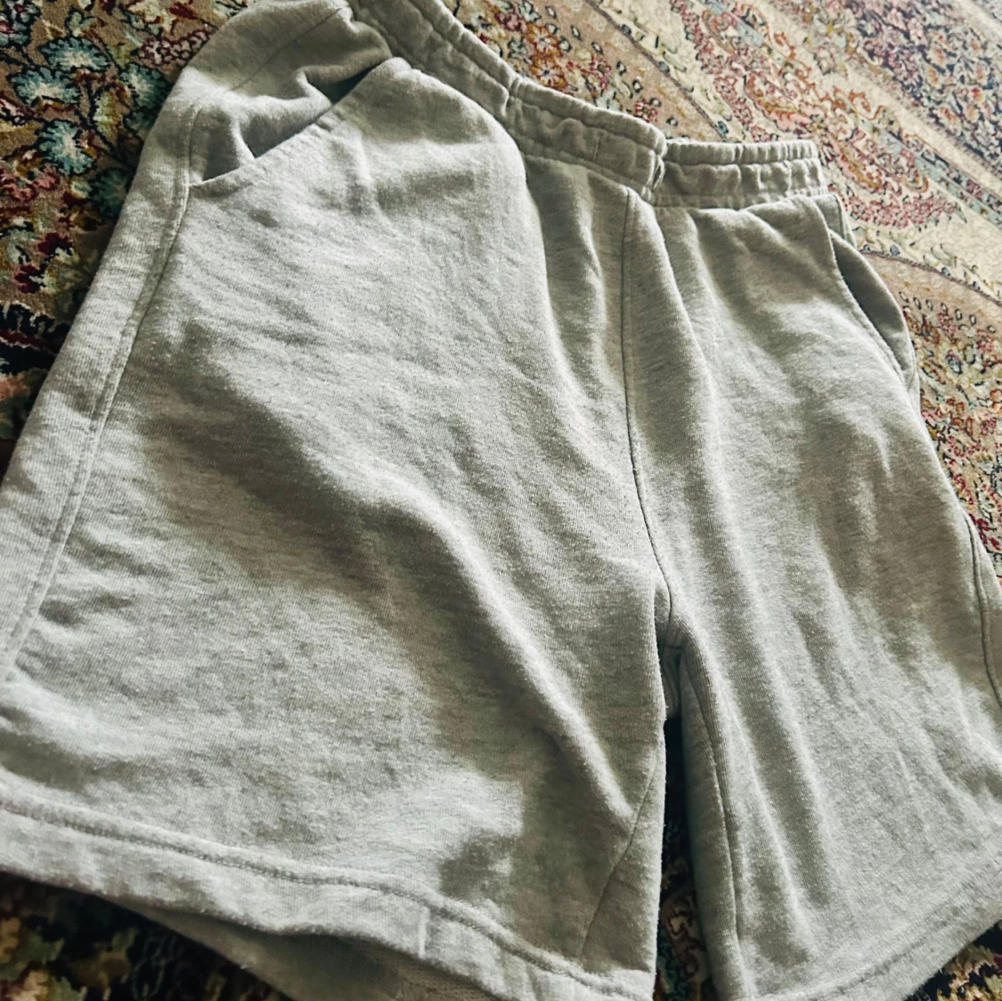Gråa shorts från Pull&Bear i mjuk bomull med elastisk midja och snörning. De har två sidofickor och en bakficka, perfekt för chill dagar. Klassisk loose fit och enkel stil som funkar till allt under sommaren.