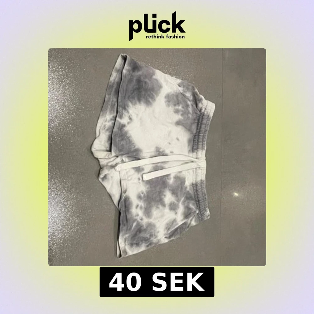 Säljer ett par bekväma shorts i grått och vitt med batikmönster. De har en elastisk midja med snörning för justerbar passform. Jag har ingen aning vilken storlek dem är eller vart jag köpt dem ifrån, men jag antar att storleken är runt xs-s. Skriv privat för fler bilder eller frågor :)