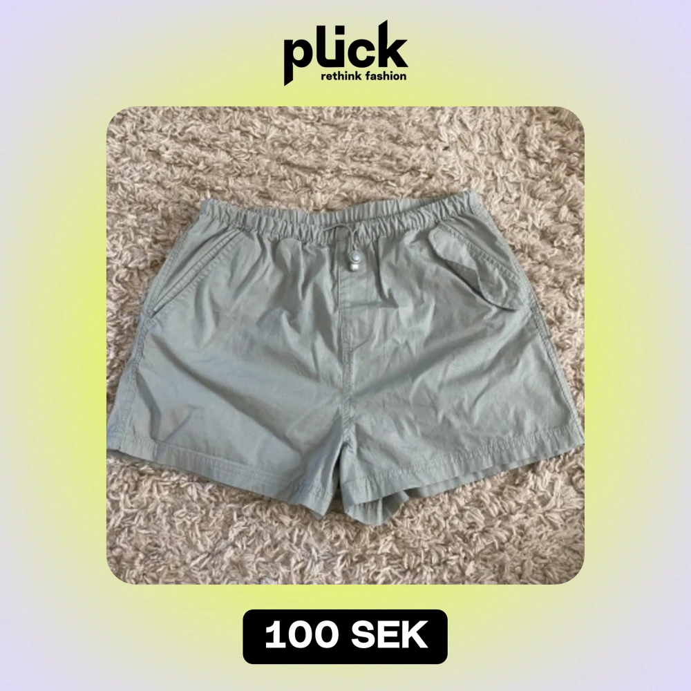 Ett par grön gråa shorts från märket Divided. Shortsen har en elastisk midja och en knapp framtill. De har två fickor fram och en ficka bak.