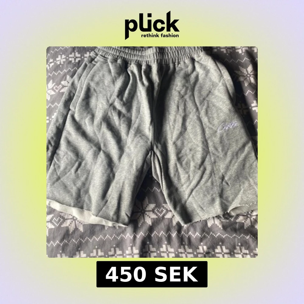 Snygga grå shorts med elastisk midja och broderad logga på ena benet. Mjukt material och fickor på sidorna, perfekt för en avslappnad stil. Liten etikett med tre röda stjärnor och HMMP-märke baktill.