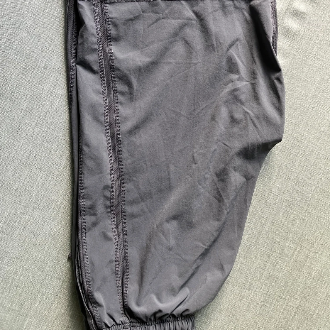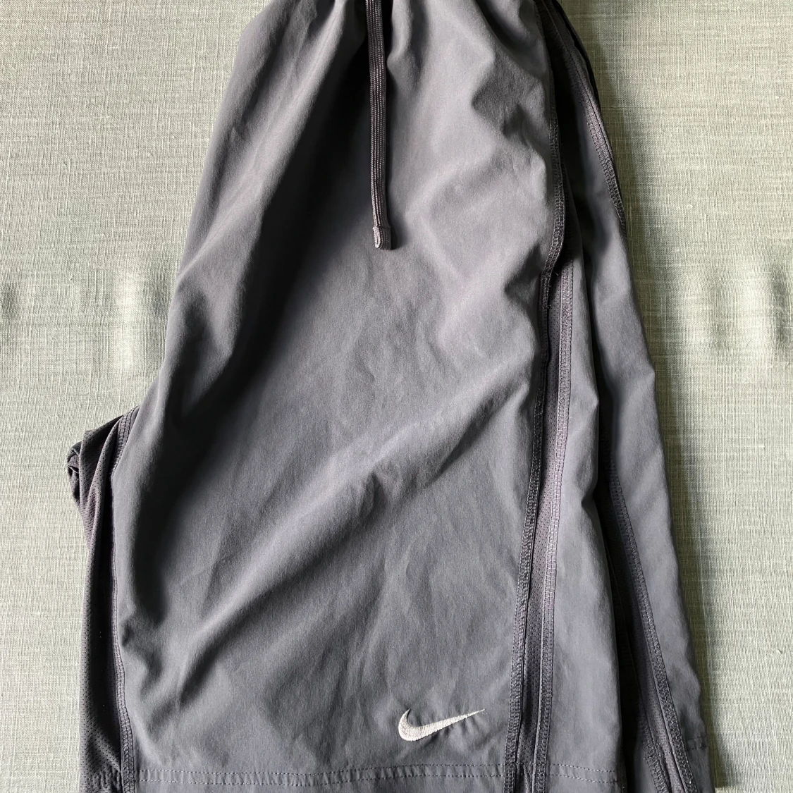 Grå träningsbyxor från Nike med elastisk midja och dragsko. Byxorna är tillverkade i ett lätt och stretchigt material av polyester och elastan. Swoosh-logga broderad framtill. Perfekta för sport eller chill.