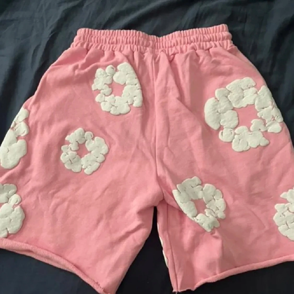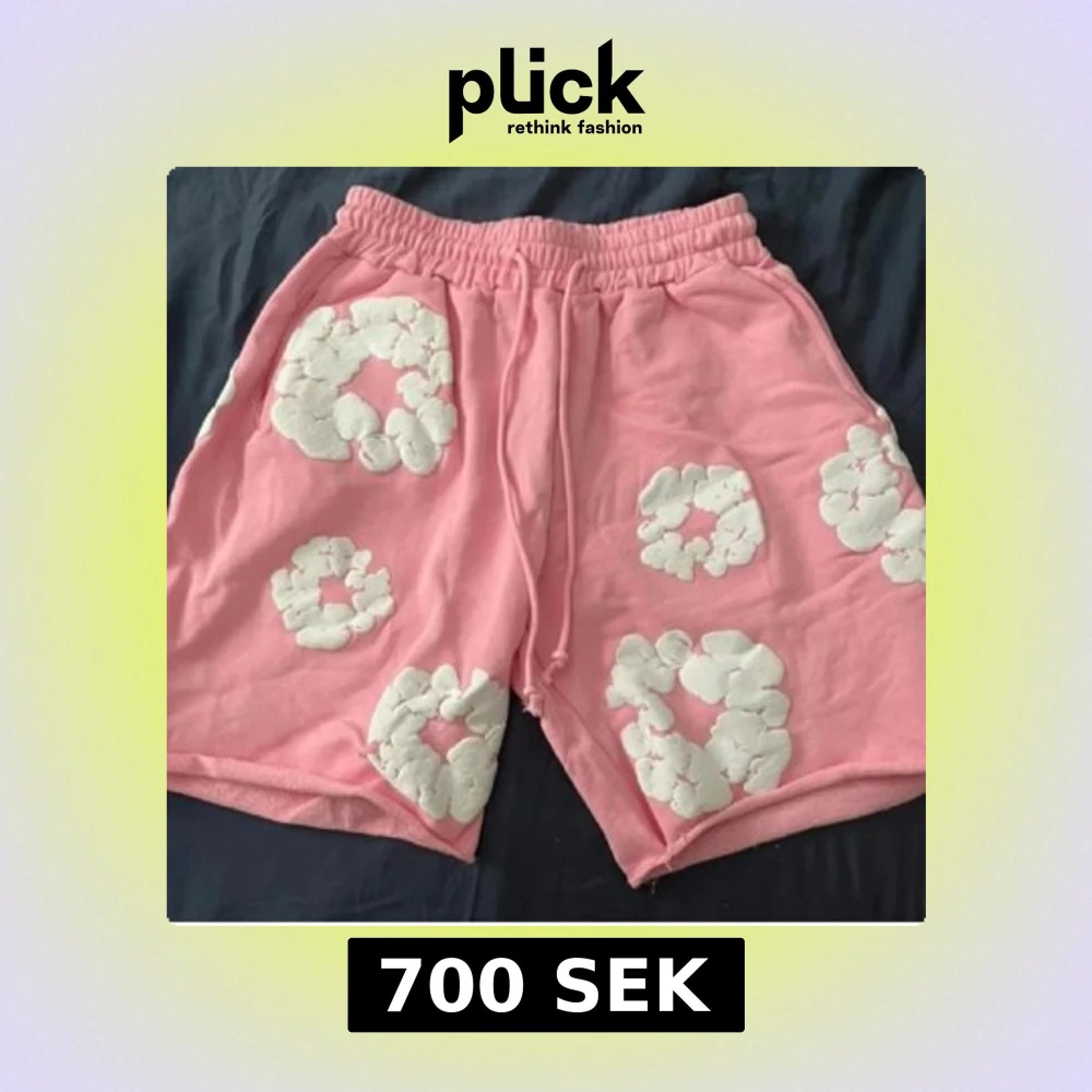 Säljer äkta rosa shorts från Denim Tears med vita, fluffiga blommor över hela plagget. Priset går absolut o diskutera!!
