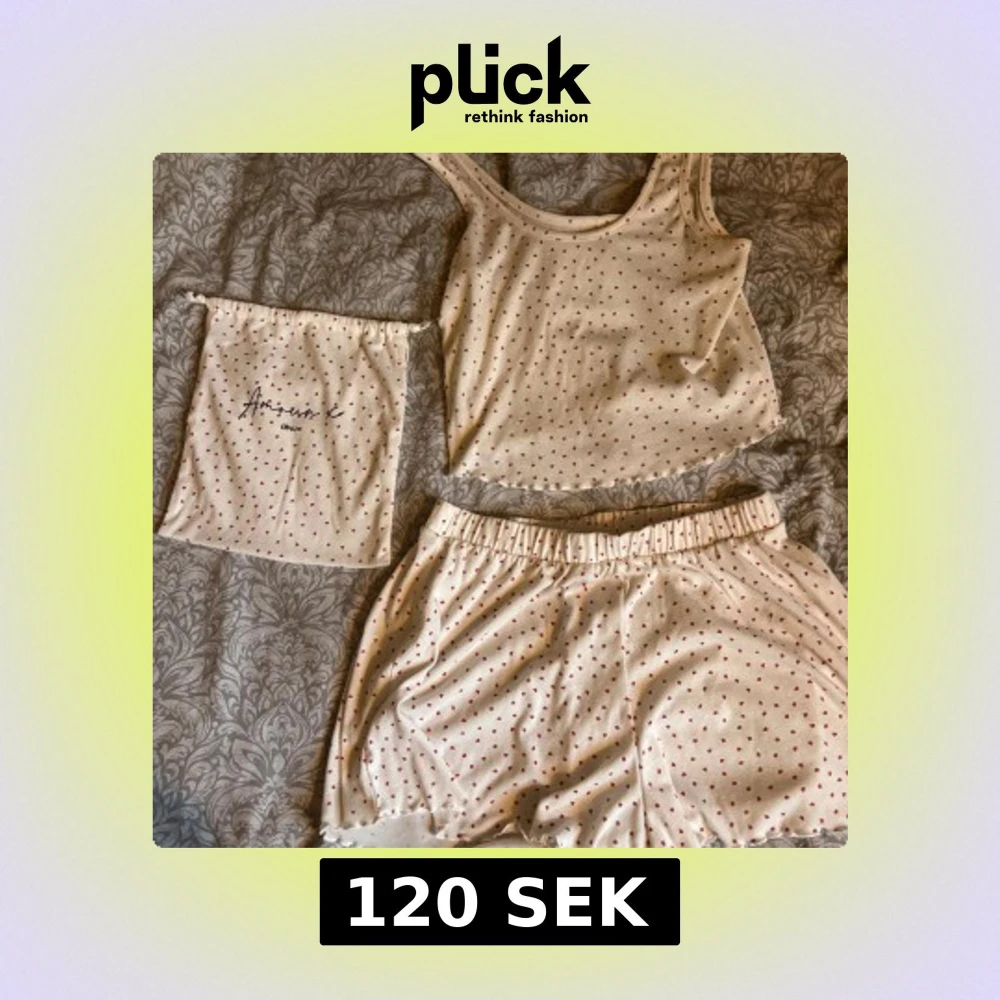 Säljer en supersöt pyjamas från only i storlek S med hjärtan på. Det är ett pyjamas sätt med en liten tygpåse till pyjamasen