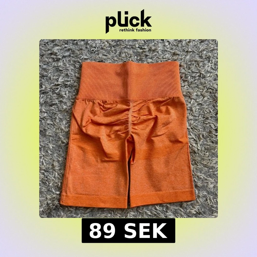 Snygga orangea träningsshorts med ribbad, hög midja och sömlös design🤍