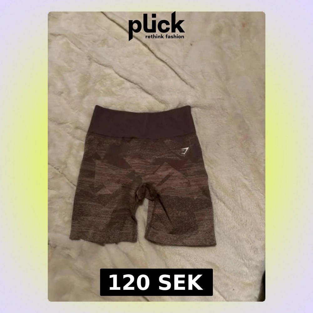 Snygga bruna seamless shorts från Gymshark med hög midja och diskret mönster. Stretchigt material som passar perfekt till träning. Logga på vänster sida. Bekväma och stilrena för gymmet eller löprundan.