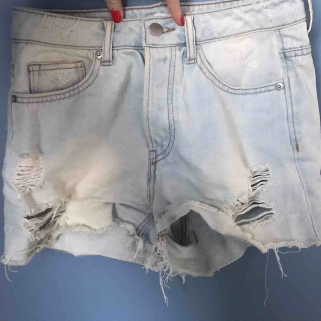 Ljusa shorts med gömd knäppning. Helt oanvända. Skulle säga att dom passar bättre som 38 eller stora 36.
