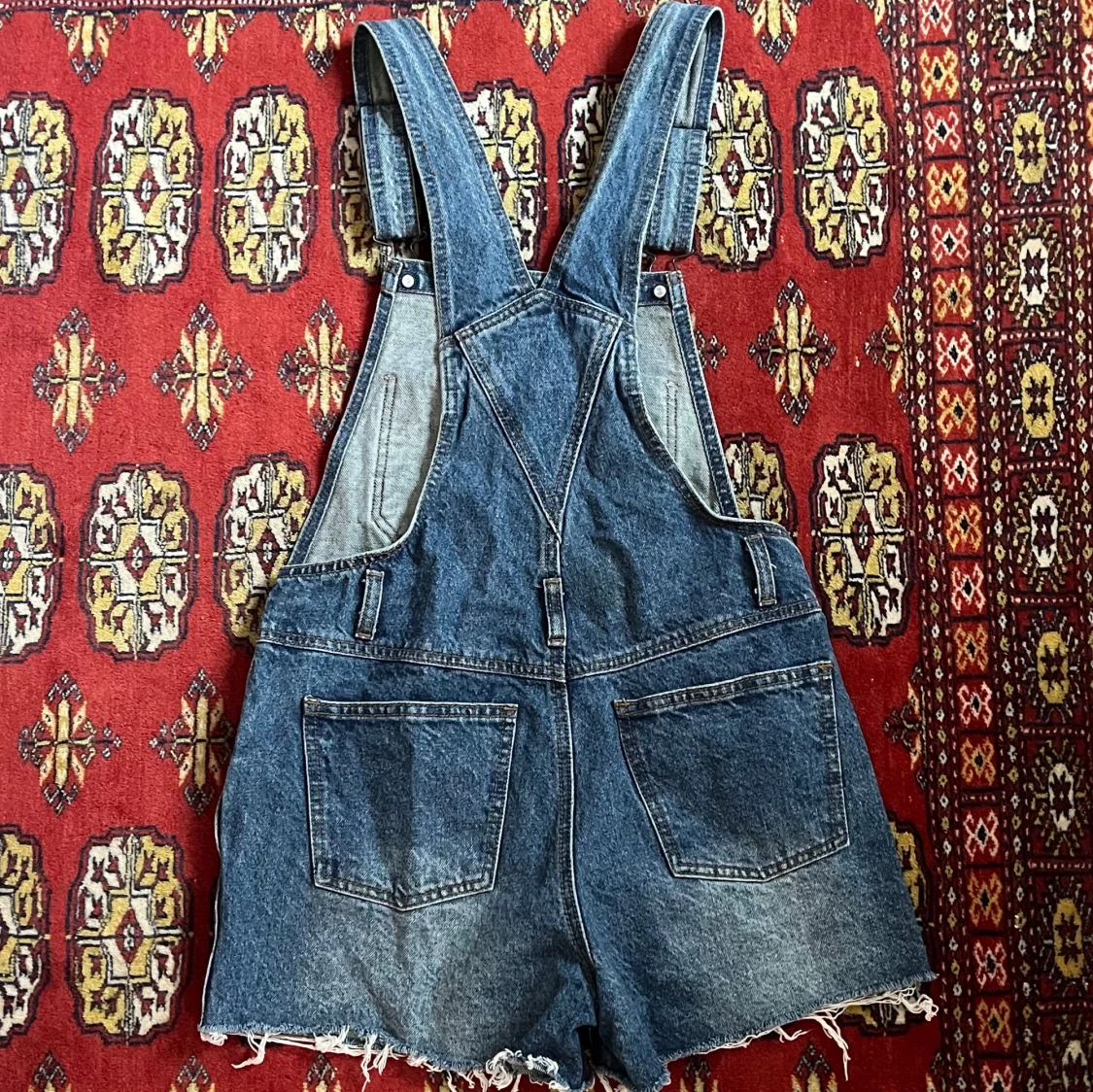 Säljer ett par coola jeansshorts med hängslen i klassisk blå denim. Köpta från Brandy Melville och har aldrig användts!