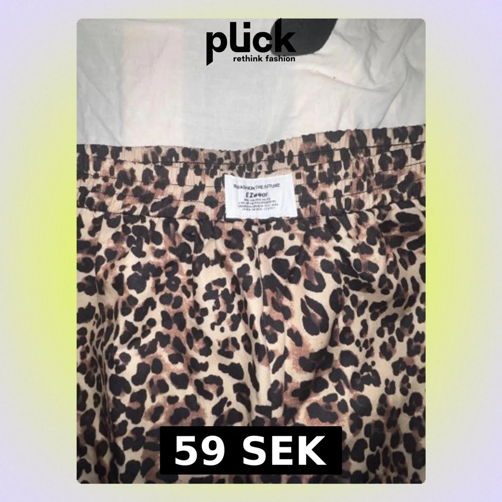 Säljer ett par sjukt snygga loose pants från SHEIN med leopardmönster i beige, brun och svart. De har elastisk midja och är tillverkade i ett mjukt, glansigt polyestermaterial som känns skönt mot huden. Perfekt för dig som vill sticka ut med ett djuriskt print. (XL känns som L) Finns i svart med.