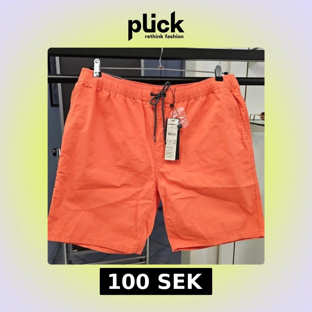 Säljer ett par orange badshorts från O'Neill med svart snörning i midjan och elastisk resår. Shortsen har sidofickor och är tillverkade i ett lätt syntetmaterial, perfekta för stranden eller poolen. Vintage effekt. Material/ Bomull.