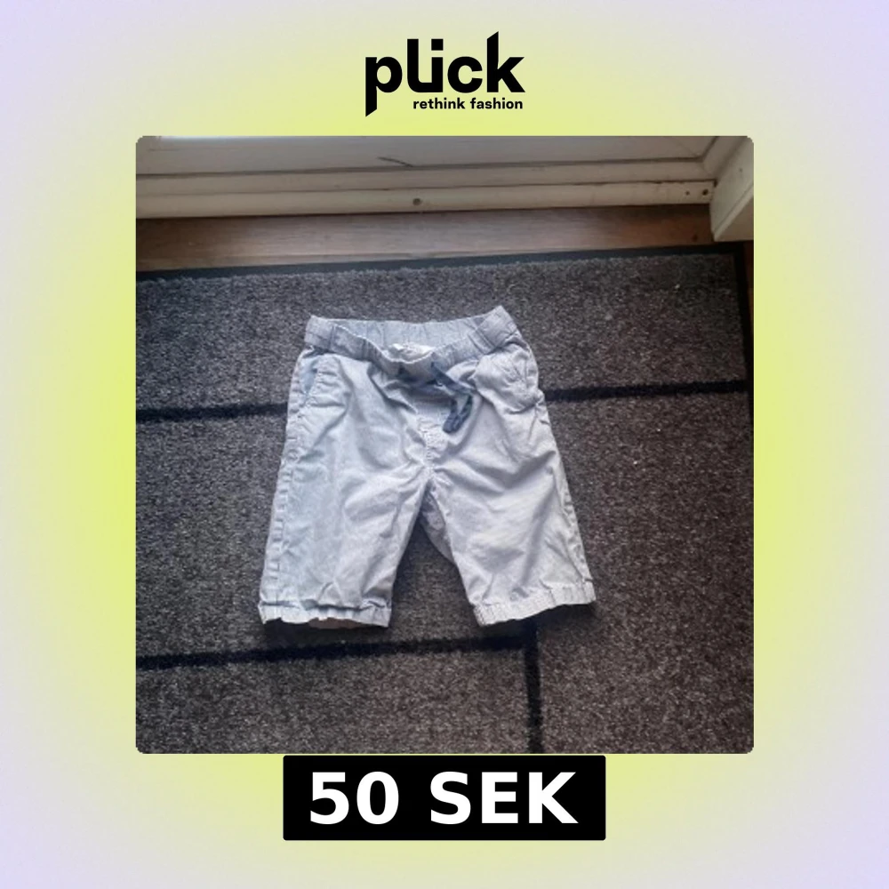 Snygga randiga shorts från H&M i ljusblått och vitt, med knytband i midjan och elastisk midja för skön passform. Tillverkade i 100% bomull, har fickor fram och bak samt uppvikta benslut. Perfekta för varma dagar och chill stil.