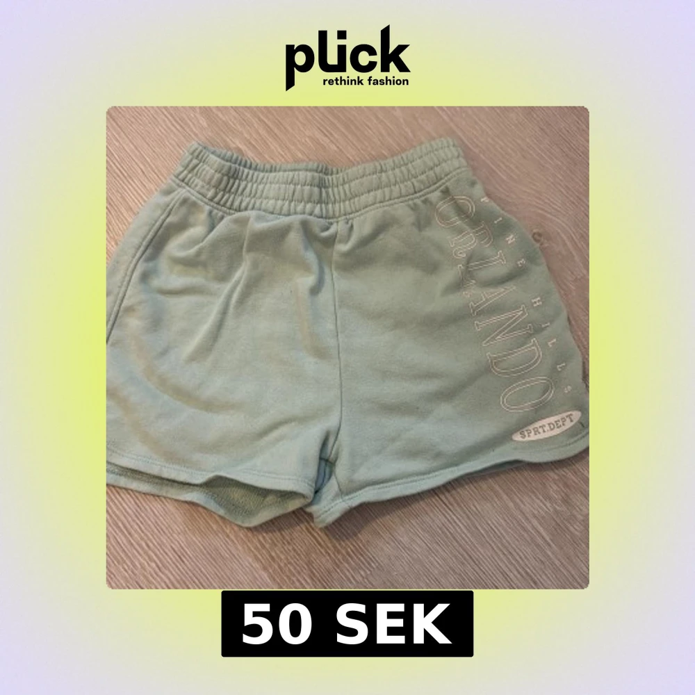 Snygga mintgröna shorts från H&M med elastisk midja och trycket 'Pine Hills Orlando SPRT.DEPT på ena benet. Mjukt material som känns skönt mot huden, perfekt för chill dagar. Klassisk loose fit och enkel design utan extra detaljer.